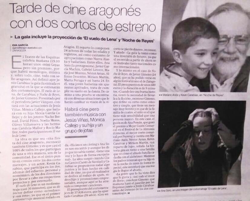 COLABORACIÓN ESPECIAL EN EL ESTRENO DEL CORTOMETRAJE «EL VUELO DE LENA»