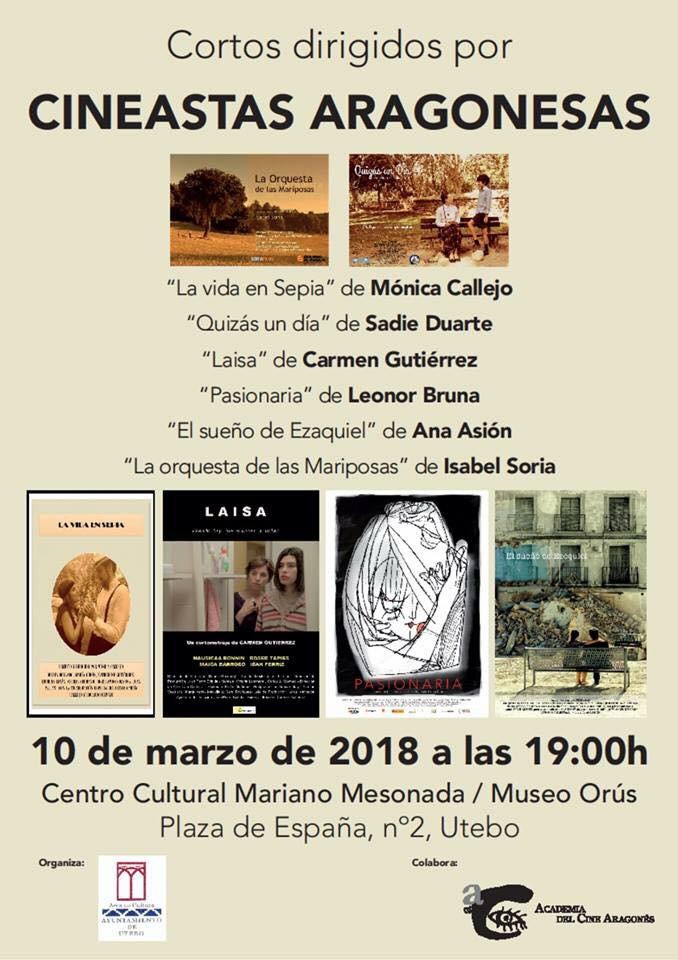 Charla coloquio hablando de cine y mujer con la proyección de varios cortometrajes de cineastas aragonesas. Actividad organizada por el Ayuntamiento de Utebo con la colaboración de la Academia de Cine Aragonés