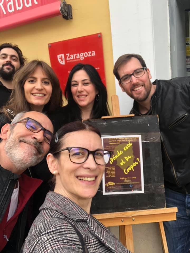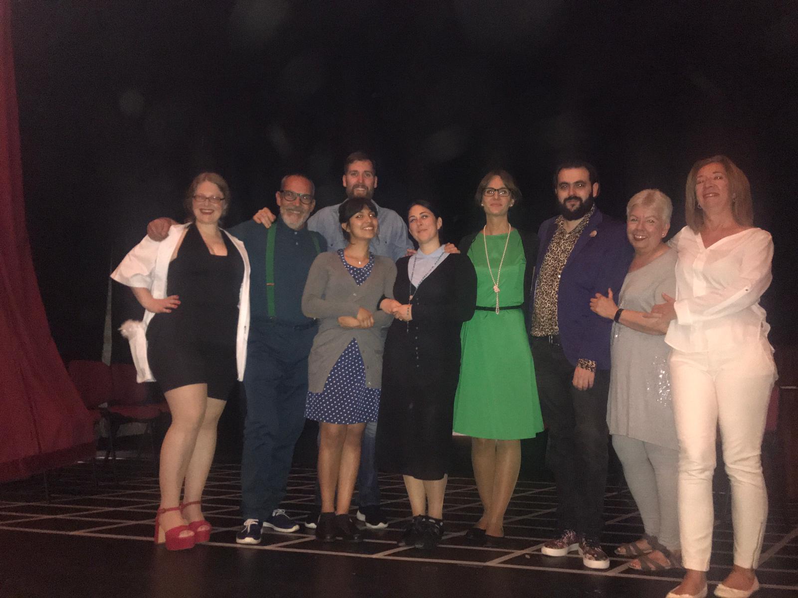 Todos los actores de Sepia Films al completo tras interpretar ¿Dónde está el Dr. Cooper? en el IV Festival de teatro Cuarta Pared de Jerez de la Frontera